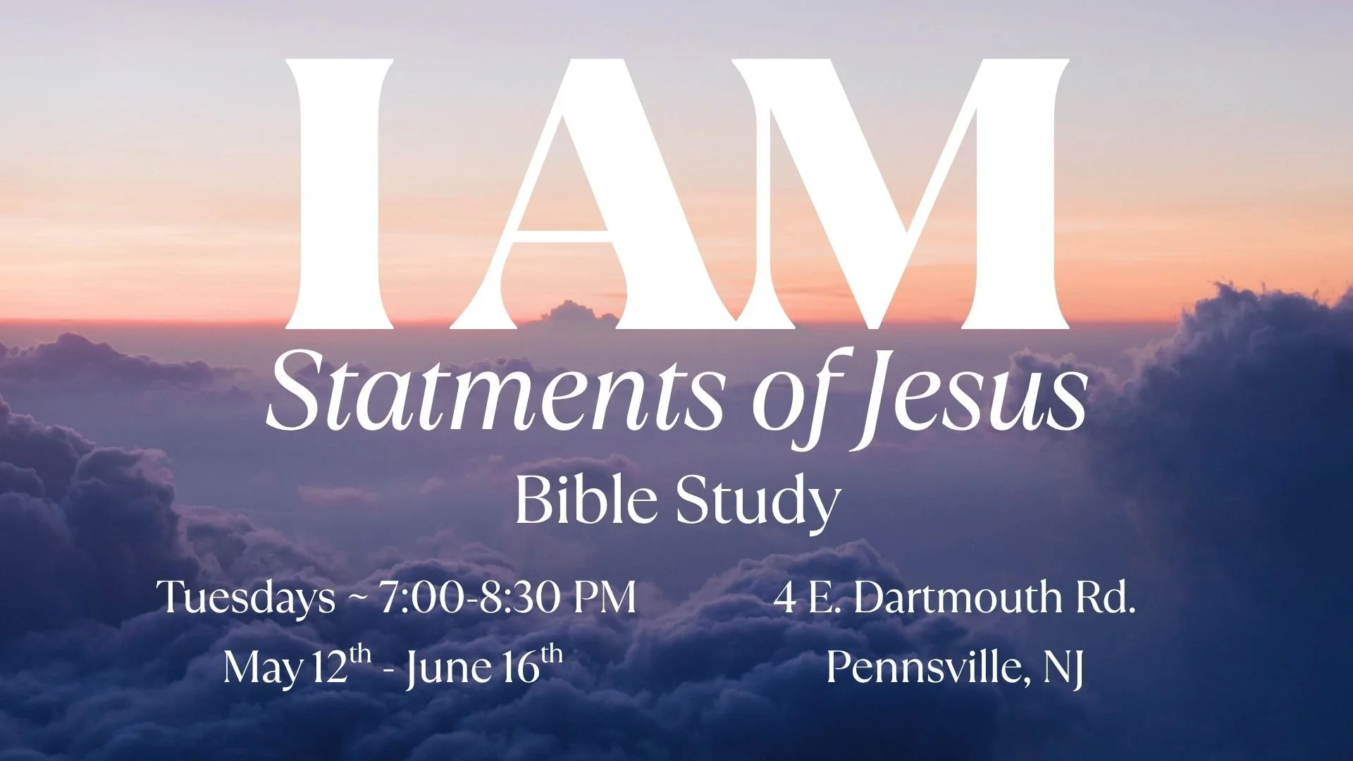 This will be a 6-week study going over the “I AM” statements of Jesus found in the Gospel of John. The small group starts on Tuesday May 12th to Tuesday, June 16th. Please go to the contact tab and email the church for more information.